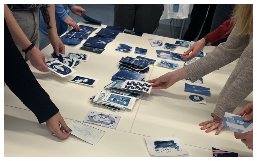In visualxperiments we explore the creative possibilities of combining cyanotype, an analogue historic photographic process, with modern digital design techniques to approach individual, fresh, and vibrant visual mutations. we experiment hands-on with different effects, from subtle tonal variations to bold graphic images, thus various materials, to push the boundaries of cyanotypes in the digital mix further and design truly original works of art that leave some space for an open mind and new visual interpretations.